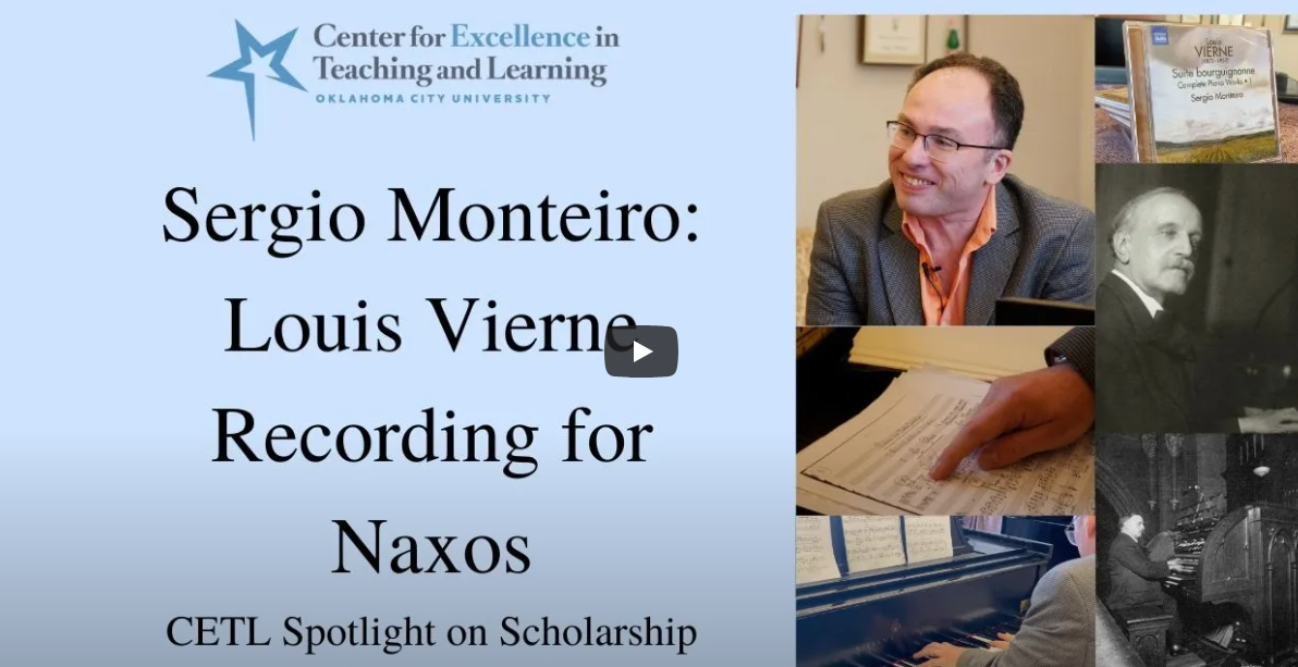 Each Month, CETL will highlight the current scholarly activities of an OCU Faculty member for our Spotlight on Scholarship. This month, we visited with Sergio Monteiro, Professor of Music and Director of Piano at OCU about an upcoming recording project through NAXOS. Click the image below to watch the video!