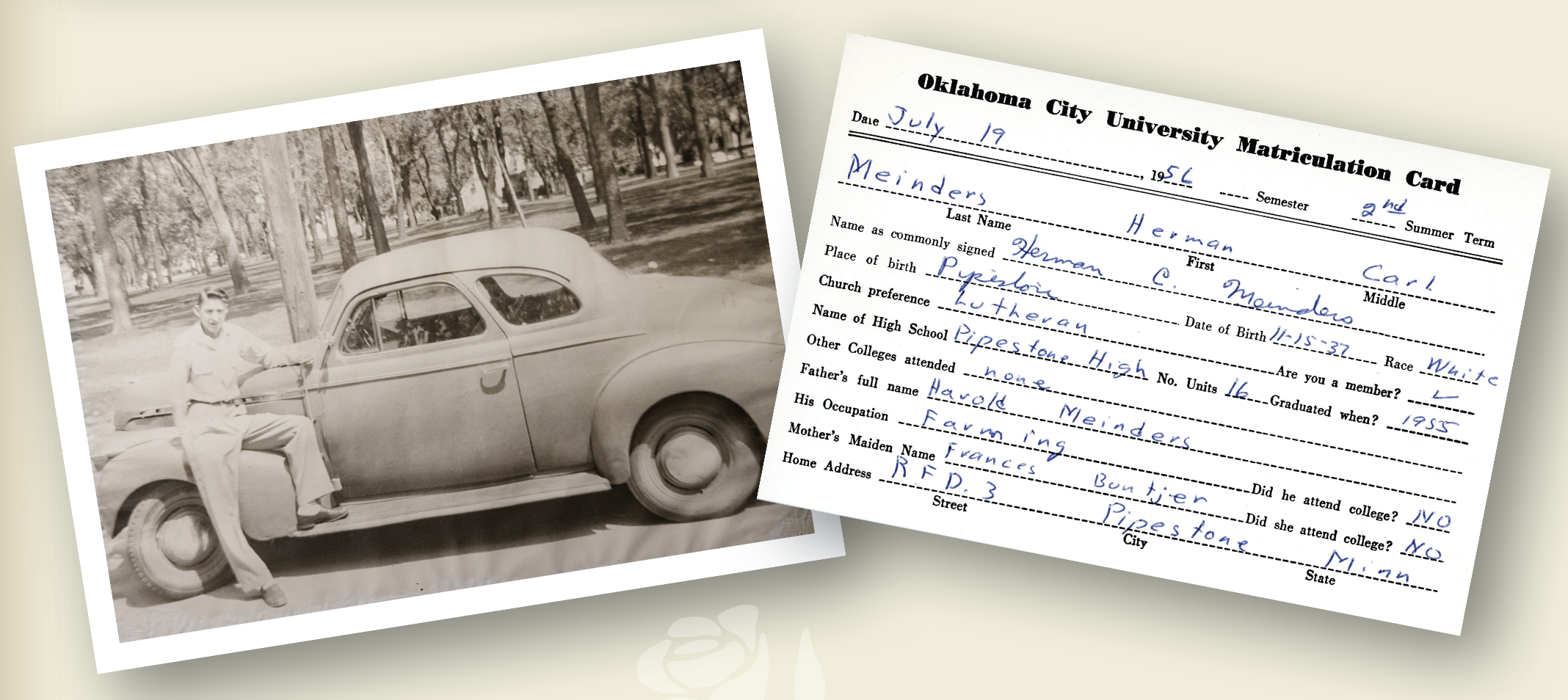 Following a brief visit, accompanied by his father, Meinders decided to take the leap and became an OCU student. He took early morning business classes so he could hold a job at a JCPenney store. He joined the Lamda Chi fraternity and made many friends.